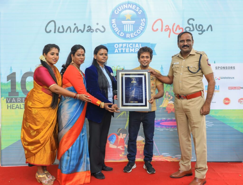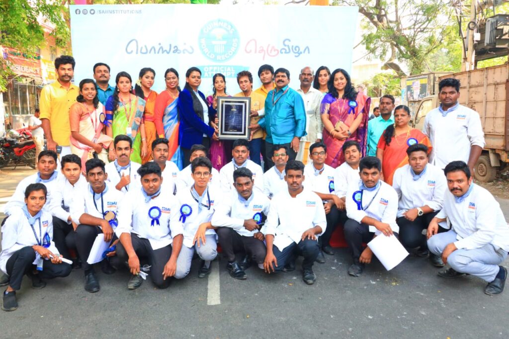 இன்று காலை, சாய் நிறுவனத்தின் முன் Dr.Chef.VK (வினோத் குமார்) தலைமையில், மண் பானை விறகுகளுடன் கூடிய உலக சாதனை முயற்சியாக, மாணவர்கள் மற்றும் பொதுமக்கள் கலந்து கொண்ட ஆரோக்கியமான 100 வகை பொங்கல்திருவிழா நடைபெற்றது. இதில் சென்னை அடையாறு துணை கமிஷனர் திரு.மஹேந்திரன், திரு. நிகில் முருகன், திருமதி. பிரியங்கா ரோபோ சங்கர், இந்திரஜிதா, நடன இயக்குனர் திருமதி. ராதிகா ஆகியோர் கலந்து கொண்டார். காலை 7.00 மணி முதல் 9.00 மணி வரை நடைபெற்றது.