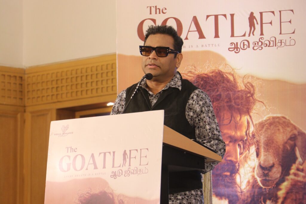 படத்தின் இசை குறித்து ஏ.ஆர்.ரஹ்மான் பேசுகையில், “பிளெஸ்ஸியின் கண்களில் இருந்த கனவு எனக்கு ‘ஆடுஜீவி’தத்தை இன்னும் ஸ்பெஷலாக மாற்றியது. சமரசம் செய்து கொள்ளாத இவரைப் போன்றவர்களால் சில சமயம் திரைப்படம் அடுத்த கட்டத்துக்குக் கொண்டு செல்லப்படுகின்றன. அவர் திரைப்படத்திற்கு கிட்டத்தட்ட ஒரு தந்தையைப் போல செயல்பட்டார். உண்மையில், இது மிகப்பெரிய விஷயம். ‘ஆடுஜீவிதம்’ படத்தின் இந்தி வெர்ஷன் எழுதிய பிரசூன் ஜோஷிக்கு நன்றி சொல்கிறேன். ஏனெனில், அவர் படத்தின் ஸ்கிரிப்ட் மற்றும் பிளெஸ்ஸி சார் மீது கொண்ட காதலால் இதற்கு சம்பளம் எதுவும் வாங்கவில்லை. இசையில் திருப்தி இல்லாததால் இந்தப் படத்திற்கு மூன்று முறை இசயமைத்தேன். கடந்த இரண்டு, மூன்று மாதங்களாக இந்த இசை மெல்ல வளர்ந்தது. இப்போதிருக்கும் இசையை படக்குழுவினர் அனைவரும் விரும்பினார்கள். இந்தப் படம் நம் எல்லோருக்குமான கதை” என்றார்.