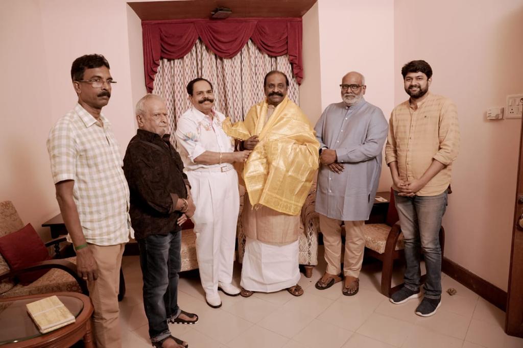 கேரளா வருகை தந்த ஆஸ்கர் விருது இசையமைப்பாளர் கீரவாணிக்கு மரியாரை செய்த மூத்த பிரபல பின்னணி பாடகர் ஜெயச்சந்திரன்
