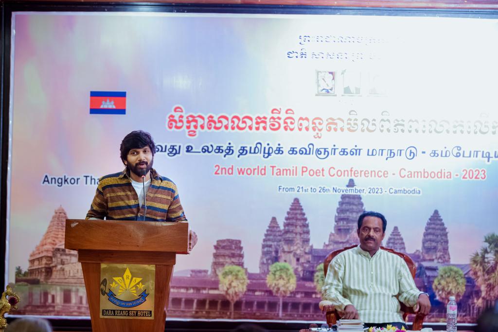 கம்போடியாவிற்கும் தமிழ்நாட்டிற்கும் 2000 ஆண்டுகாலப் பாரம்பரியத் தொடர்பு உண்டு.வாணிபத் தொடர்பு வழியாகச் சென்று கலந்த தமிழர்களின் நாகரிகம் பண்பாடு போன்றவற்றின் தாக்கம் கம்போடியாவில் இன்றும் உண்டு.அங்கும் தமிழர்கள் வசிக்கிறார்கள்; தமிழ்க் கலைகளைக் கொண்டாடுகிறார்கள்.அதன் ஓர் அம்சமாக கம்போடியாவின் சியம் ரீப் நகரில் இரண்டாம் உலகத் தமிழ்க் கவிஞர்கள் மாநாடு நடைபெற்றது.