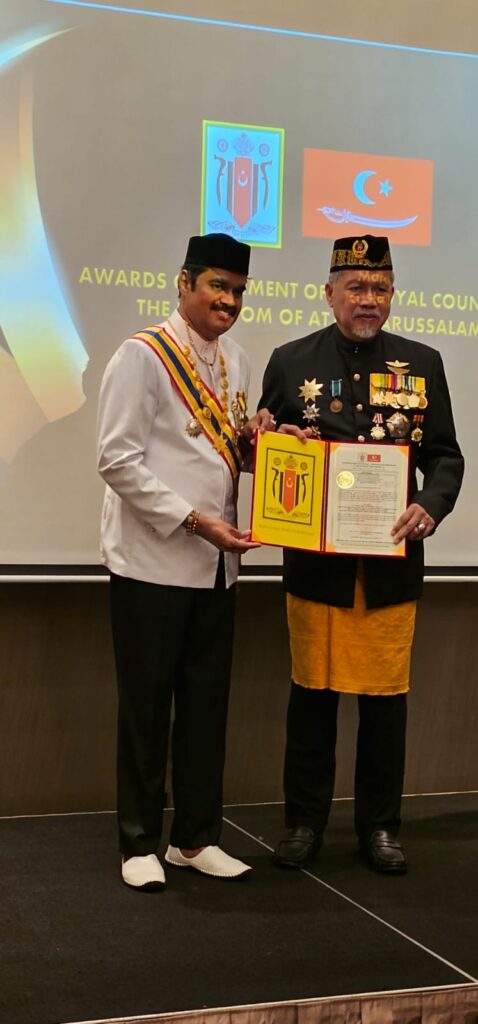 நடிகர் ஆர்கேவுக்கு மிக உயரிய டான் ஸ்ரீ விருது வழங்கி ATJEH DARISSALUM மன்னர் கௌரவம்