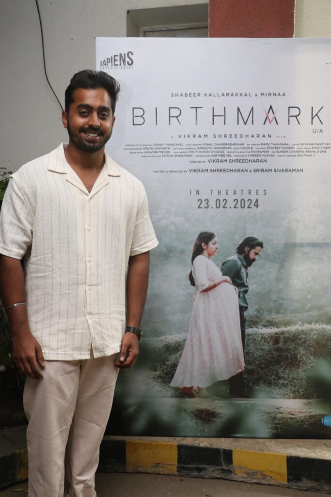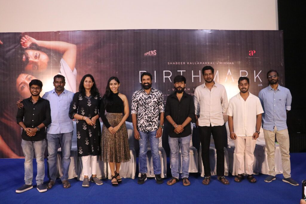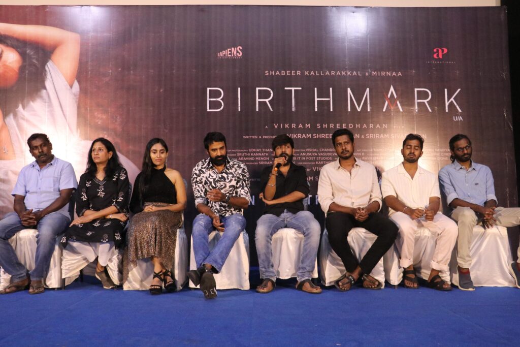 இதில் இயக்குநர் விக்ரம் ஸ்ரீதரன் பேசியதாவது, “குழந்தைப் பிறப்பு முறை பற்றி இந்தப் படம் மூலம் விழிப்புணர்வு ஏற்படுத்த வேண்டும் என்பதுதான் எங்கள் நோக்கம். ’பர்த் மார்க்’ என ஆங்கிலத்தில் தலைப்பு வைக்கக் காரணம் கதையோடு சேர்ந்த வந்த விஷயம் என்பதால்தான். இந்த இரண்டு வருடங்களில் ஒவ்வொரு விஷயமும் ‘பர்த் மார்க்’ போல எங்கள் கூடவே ஒட்டிக் கொண்டது. கார்கில் போருக்குப் பிறகு 1999-ல் நடக்கும் கதையாக இது உருவாக்கப்பட்டுள்ளது. அப்போதிருக்கும் மனநிலையைதான் ஷபீரின் டேனி கதாபாத்திரம் திரையில் பிரதிபலித்திருக்கும். மிர்னாவும் ஜெனி என்ற கர்ப்பிணி பெண்ணாக சிறப்பான நடிப்பைக் கொடுத்திருக்கிறார். நிஜமான கர்ப்பிணியின் வயிறு, அதன் எடை போலவே உண்மையான புராஸ்தெடிக் வயிறு மிர்னாவுக்கு செய்து கொடுத்தோம். அதை வைத்துக் கொண்டே அவர் படம் முழுக்க நடந்து, ஓடி நடித்திருப்பார். அது பெரிய விஷயம். போர் வீரனுடைய மனநிலை மற்றும் கர்ப்பிணி பெண்ணின் மாற்றங்கள் என அனைத்தையும் முறையாக ரிசர்ச் செய்துதான் உருவாக்கி இருக்கிறோம் இதற்கே எங்களுக்கு ஒரு வருடம் ஆனது. படத்திற்கு விஷால் சந்திரசேகரின் இசை மிகப்பெரிய பலம். படம் பார்த்துவிட்டு உங்கள் ஆதரவை நீங்கள் கொடுக்க வேண்டும்”.