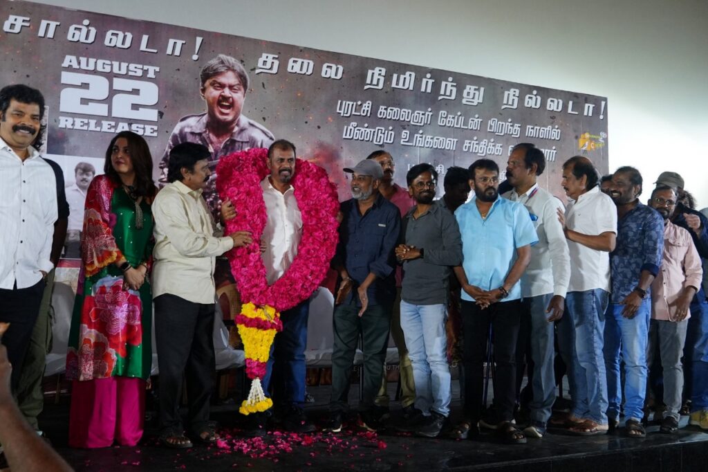 எங்கள் இருவருக்கும் நட்பு என்பதையும் தாண்டி வேறு உறவு. அவர் மனதில் எனக்கு தனி இடம் இருந்தது. போகும்போது தனுடைய அடையாளத்தை விட்டுட்டு செல்பவன் தான் சிறந்த மனிதன். அப்படி விஜயகாந்த் இந்த பூமியில் இன்னும் வாழ்ந்து கொண்டிருக்கிறார். இந்த படம் வெளியான பிறகு ஆர்கே செல்வமணியை தேடி நிச்சயமாக தயாரிப்பாளர்கள் வருவார்கள்” என்று கூறினார்.