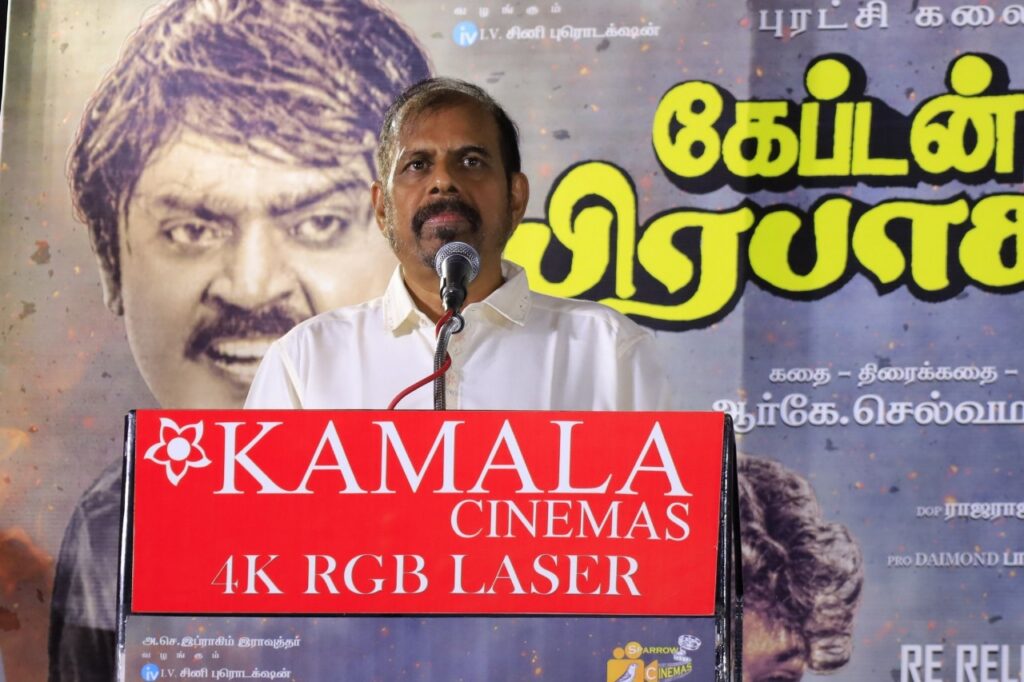 “அகில இந்திய சினிமா உற்றுப்பார்த்த சில திரைப்படங்களில் கேப்டன் பிரபாகரன் படமும் ஒன்று. கேப்டன் என்கிற அடைமொழியை விஜயகாந்துக்கு தந்தது. இப்படி ஒரு பிரம்மாண்ட படத்தை அந்த காலத்தில் யாரும் எடுக்க முடியாத பட்ஜெட்டில் எடுத்தார் இப்ராஹிம் ராவுத்தர். சோலே படத்தின் பத்து சதவீத பட்ஜெட்டில் தமிழில் ஒரு சோலை போல எடுத்தார் ஆர்கே செல்வமணி. இந்த படத்தில் ஆர்கே செல்வமணியுடன் தோளுக்கு தோள் நின்றது லியாகத் அலிகானின் வசனங்கள். மன்சூர் அலிகானை உருவாக்கிய படம் இது. கேப்டன் ரத்தம் சொட்ட சொட்ட நடித்த படம் இது. கேப்டன் பிரபாகரன் காலத்தை வென்ற படம் தான். ரீ ரிலீஸில் இந்த படம் தான் பெஸ்ட் என்கிற சாதனையை கேப்டன் பிரபாகரன் படைக்க வேண்டும் என விரும்புகிறேன்” என்று கூறினார்.