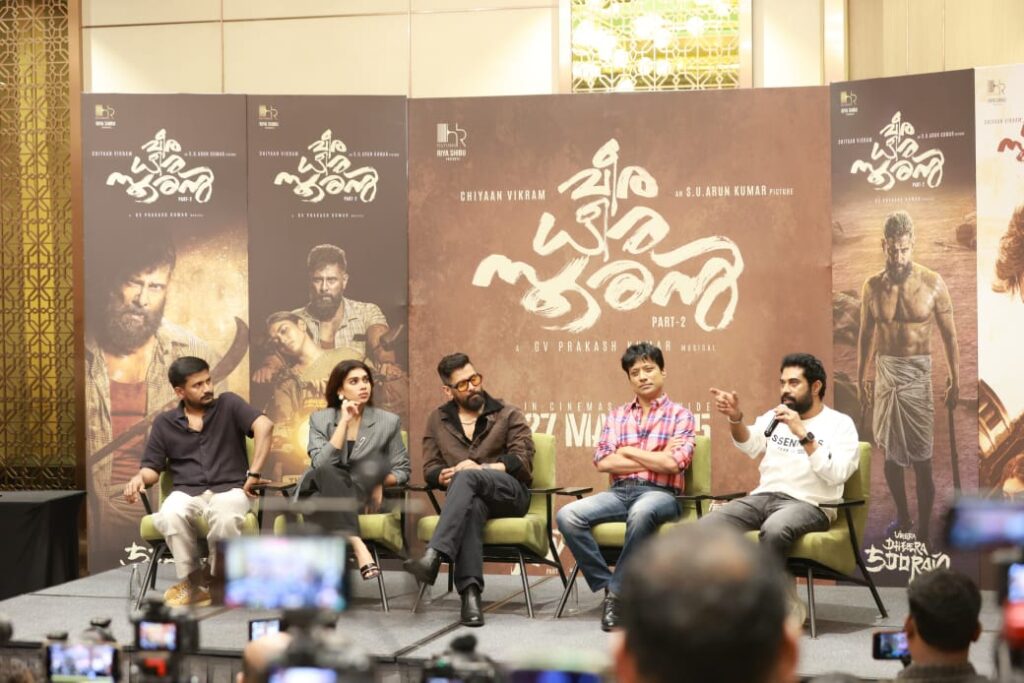 HR பிக்சர்ஸ் நிறுவனம் சார்பில் தயாரிப்பாளர் ரியா ஷிபு தயாரிப்பில் இயக்குநர் எஸ். யூ. அருண் குமார் இயக்கத்தில், சீயான் விக்ரம், எஸ். ஜே. சூர்யா, சுராஜ் வெஞ்சரமூடு, துஷாரா விஜயன் உள்ளிட்ட பலரின் நடிப்பில் உருவாகி இருக்கும் ‘வீர தீர சூரன் பார்ட் 2 ‘ படத்தின் வெளியீட்டுக்கு முன்னரான விளம்பரப்படுத்தும் நிகழ்வு மற்றும் பத்திரிகையாளர் சந்திப்பு திருவனந்தபுரத்தில் நடைபெற்றது.