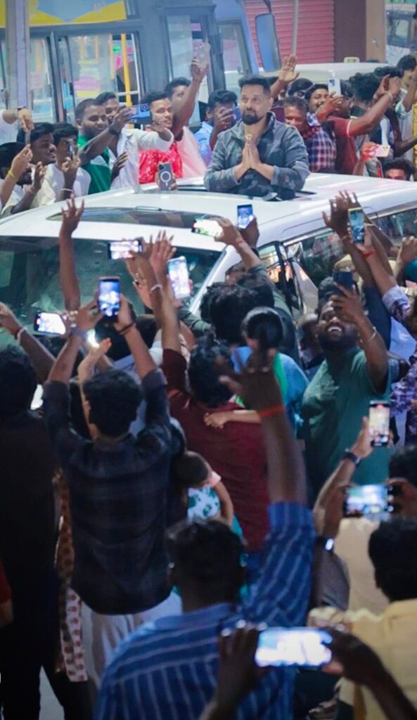 சீயான் விக்ரம் நடிப்பில், ‘வீர தீர சூரன் பார்ட் 2 ‘ படம், மிகப்பெரிய வரவேற்பைப் பெற்று வெற்றியடைந்துள்ளது. இந்நிலையில் தமிழகம் முழுக்க, ரசிகர்களைச் சந்தித்து வருகிறார் சீயான் விக்ரம். இதன் ஒரு பகுதியாக கரூர் சென்றபோது, ஆயிரக்கணக்கில் ரசிகர்கள் கூட, மொத்தப் போக்குவரத்தும் ஸ்தம்பித்துள்ளது. ரசிகர்களின் உற்சாக வரவேற்பில், மனம் நெகிழ்ந்த சீயான் விக்ரம் அனைவருக்கும் நன்றி தெரிவித்தார்.