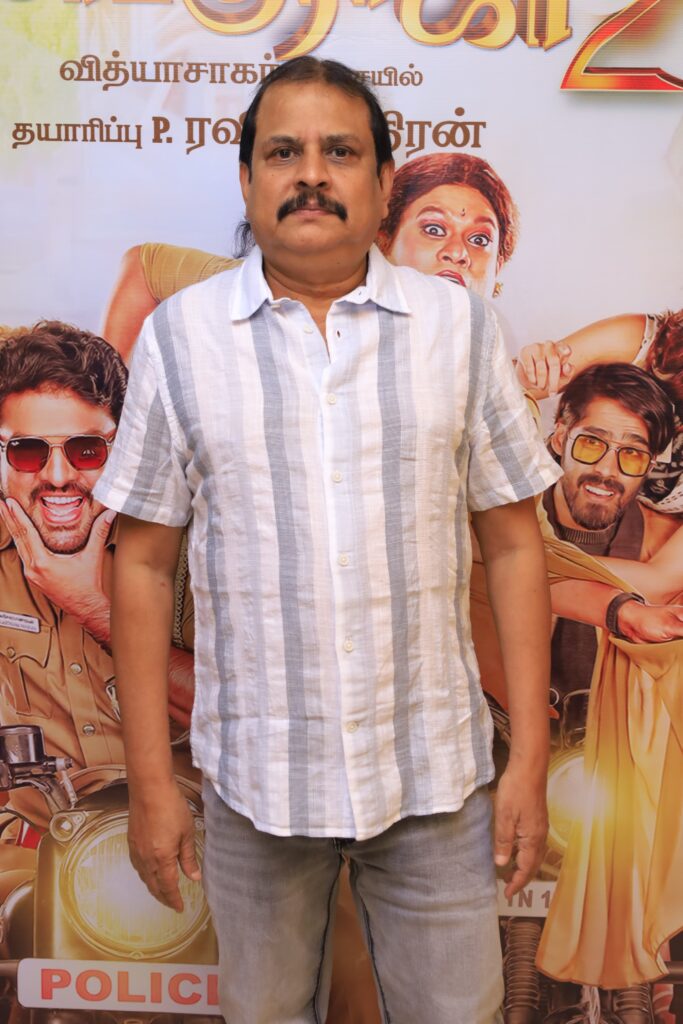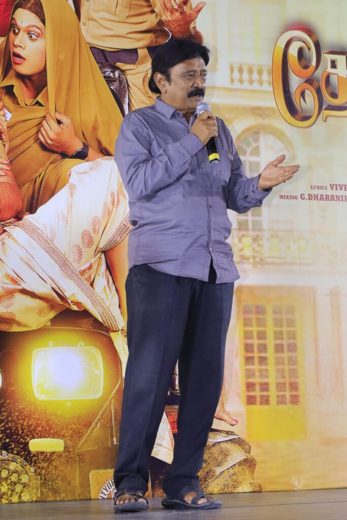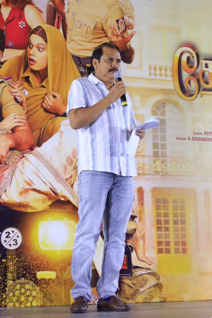 “எழில் சாருக்கு இது 25வது வருடம். விமலை இப்படி வேட்டி சட்டையில் பார்க்கும்போது அவரது இயல்பிலும் சரி உடையிலும் சரி 100% விஜயகாந்த் மாதிரி தான் இருக்கிறார். இசையமைப்பாளர் வித்யாசாகர் மெலடியில் மட்டுமல்ல, எல்லாவற்றிலும் கிங். என்னை கெடுத்ததே அவர்தான். திருப்பாச்சி படத்தில் விஜய் சாருக்கு அருமையான மெலடி பாடல் ஒன்றை உருவாக்கி அதை சொல்வதற்காக அவர் கில்லி படப்பிடிப்பில் இருந்தபோது பார்க்க சென்றிருந்தேன். அங்கே வித்யாசாகர் இசையில் அப்படி போடு போடு என்கிற பாடல் காட்சி படமாகி கொண்டிருந்தது. அதை பார்த்ததும் நம் ரூட்டை மாற்ற வேண்டும் என நினைத்து தான், மீண்டும் அந்தப் பாடலை ‘அத்த பெத்த வெத்தலை’ என்கிற குத்துபாட்டாக மாற்றினேன். என்னை குத்துப்பாட்டு இயக்குனராக மாற்றியது வித்யாசாகர் தான். அவருடைய எதிரும் புதிரும் படத்தில் இடம்பெற்ற தொட்டு தொட்டு பேசும் சுல்தானா பாடலில் கூட முதலில் சிம்ரன் நெப்போலியனும் ஆடுவதாக தான் இருந்தது அதன் பிறகு தான் ராஜூசுந்திரம் மாஸ்டர் நடித்தார். இன்றைக்கும் அந்த பாடல் ட்ரெண்டிங்கில் இருக்கிறது. ஒரு வகையில் நானும் எழில் சாரும் எதிரும் புதிருமாகத்தான் இருக்கிறோம். நான் ஸ்கிரிப்ட் தாண்டி யாரையும் பேச விட மாட்டேன். இவர் அப்படி பேசுவதற்கு சுதந்திரம் கொடுத்திருக்கிறார் என்று எல்லோரும் பேசுவதில் இருந்து தெரிந்து கொண்டேன். இந்த படம் மிகப்பெரிய வெற்றி அடைய வாழ்த்துக்கள்” என்று பேசினார்.