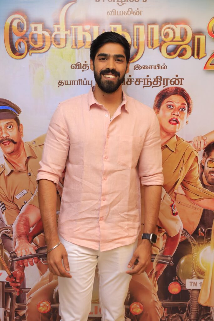 “இசையமைப்பாளர் வித்யாசாகர் இசையில் இரண்டு படங்கள் அல்ல.. இரண்டேகால் படங்கள் பண்ணியிருக்கிறேன். கில்லி படத்தில் கொக்கர கொக்கரக்கோ பாடலில் நான் ஆடியிருக்கிறேன். இயக்குநர் எழிலுடன் இது எனக்கு இரண்டாவது படம். கிட்டத்தட்ட 13 வருடங்களுக்குப் பிறகு இயக்குநர் எழிலுடன் இணைந்துள்ளேன். இதற்கு முன்பு நான் நடித்த விலங்கு என்கிற வெப்சீரிஸ், போகும் இடம் வெகு தூரம் இல்லை படம் எல்லாம் சீரியஸாக இருந்தன. அந்த சமயத்தில் தான் இயக்குனர் எழில், தேசிங்குராஜா 2 படத்திற்கு என்னை அழைத்தார். அப்படி சீரியஸாக நடித்துவிட்டு இந்த படத்தின் படப்பிடிப்பு தளத்திற்கு வந்தபோதே அவ்வளவு ரிலாக்ஸாக, ஜாலியாக இருந்தது.