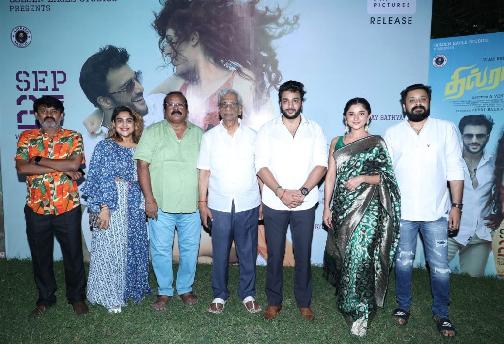 GOLDEN EAGLE STUDIOS சார்பில், கோவை பாலாசுப்பிரமணியம் தயாரிப்பில், இயக்குநர் ஏ வெங்கடேஷ் இயக்கத்தில், விஜய் சத்யா, ஷெரீன் நடிப்பில், அசத்தலான கமர்ஷியல் கலாட்டாவாக உருவாகியுள்ள திரைப்படம், “தில் ராஜா”. வருகிற 27 ம் தேதி திரைக்கு வரவுள்ள இப்படத்தின் பத்திரிக்கையாளர் சந்திப்பு, படக்குழுவினர் கலந்துகொள்ளப் பத்திரிக்கை ஊடக நண்பர்கள் முன்னிலையில் நடைபெற்றது.