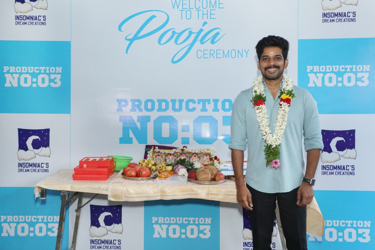 ‘இறுதிப்பக்கம்’ மற்றும் ‘டியர் ரதி’ ஆகிய கவனிக்கத்தக்கத் திரைப்படங்களைத் தொடர்ந்து, Insomniac’s Dream Creations நிறுவனம் தனது மூன்றாவது தயாரிப்பை (Production No. 3) பிரம்மாண்டமான பூஜையுடன் தொடங்கியுள்ளது.