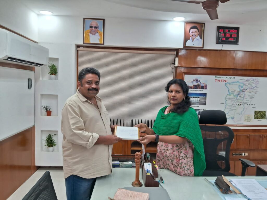விஷன் சினிமா ஹவுஸ் டாக்டர் அருளானந்து தயாரித்து,ஏகன் கதாநாயகனாக அறிமுகமாகும், இயக்குனர் சீனு ராமசாமி இயக்கும் ஒன்பதாவது திரைப்படமான “கோழிப்பண்ணை செல்லதுரை” படத்தின் படப்பிடிப்பு தேனி மாவட்டத்தில் அடுத்த மாதம் நடைபெற உள்ளது. படப்பிடிப்பு தளங்களை பார்வையிட வந்த இயக்குனர் சீனு ராமசாமி மரியாதை நிமித்தமாக தேனி மாவட்ட ஆட்சியர் ஷஜீவனா அவர்களை நேரில் சந்தித்து தான் எழுதிய ‘புகார் பெட்டியின் மீது படுத்து உறங்கும் பூனை’என்னும் கவிதை நூலை நினைவு பரிசாக வழங்கி பல சீர்மிகு பணிகளால் தேனி மாவட்ட மக்களின் அன்பை பெற்ற பெண் கலெக்டரை வாழ்த்தினார்.