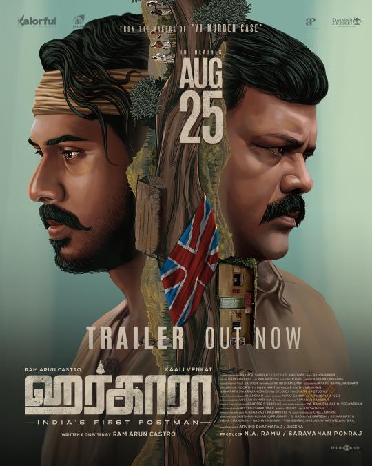 KALORFUL BETA MOVEMENT தயாரிப்பில், ட்ரீம் வாரியர் பிக்சர்ஸ் வழங்க, அருண் காஸ்ட்ரோ இயக்கத்தில், மாறுபட்ட களத்தில், காளி வெங்கட், அருண் காஸ்ட்ரோ நடிப்பில் இந்தியாவின் முதல் தபால் மனிதன் கதை சொல்லும் திரைப்படம் “ஹர்காரா”. இன்று வெளியான இப்படத்தின் டிரெய்லர் திரை ஆர்வலர்களிடம் பெரும் வரவேற்பைப் பெற்று வருகிறது.