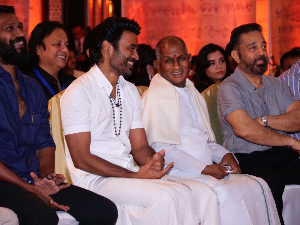 இவ்விழாவினில் நடிகர் தனுஷ் கூறுகையில்.., “இது எனக்கு உண்மையிலேயே நிறைவான தருணம். எனது சிறுவயதிலிருந்தே, மேஸ்ட்ரோ இளையராஜா சாரின் மயக்கும் மெல்லிசைக்கு நான் ரசிகன். நம் எண்ணங்களே நம்மை வடிவமைக்கப்படுகின்றன என்று கூறுவார்கள். அது தான் உண்மை, நாம் முழு மனதுடன் நம் கனவை நோக்கி நம்மை அர்ப்பணிக்கும் போது, அவை நிறைவேறும். பலர் தங்கள் மன அமைதிக்கு இளையராஜாவின் பாடல்களை நாடுகிறார்கள். பலர் உறக்கத்திற்காக அவரது பாடல்களில் மூழ்குவார்கள், நான் என் பல இரவுகளை அவரது இசையுடன் கழித்துள்ளேன். வெள்ளித்திரையில் அவரது பாத்திரத்தை ஏற்று நடிக்க வேண்டும் என்பது எனது கனவாக இருந்தது. இப்போது அது நடப்பது மிகுந்த மகிழ்ச்சி. எனது திரை வாழ்க்கையில் ஆரம்பம் முதல் இப்போது வரை, ஒரு நடிகனாக உண்மையிலேயே சிறப்பான நடிப்பை வழங்க வேண்டிய தருணத்தில் எல்லாம், எனது இயர்போன்கள் மூலம் அவரது இசையமைப்பில் மூழ்கி, அதன் மூலமே என் நடிப்பை வெளிப்படுத்துவேன். இன்று வரை எனக்கு நடிப்பு சொல்லித்தருவது அவரது இசை தான். இப்படத்தில் அவரது கதாபாத்திரத்தில் நடிக்க வாய்ப்பு கிடைத்ததில் நான் மிகவும் பெருமையாக உணர்கிறேன்.