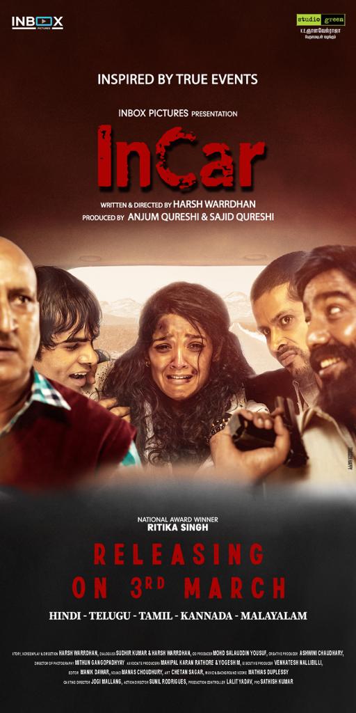 Inbox Pictures சார்பில் அஞ்சும் குரேஷி, சாஜித் குரேஷி தயாரிப்பில், இயக்குநர் ஹர்ஷ் வர்தன் இயக்கத்தில், நடிகை ரித்திகா சிங் முதன்மை கதாப்பாத்திரத்தில் நடித்துள்ள திரைப்படம் “இன் கார்”. கடத்தப்பட்டு வன்புணர்வுக்குள்ளாகும் பெண்ணின் வலியை, அவளது பார்வையில் அந்த கடத்தல் சம்பவத்தின் வழியாகவே சொல்லும் படமாக இப்படம் உருவாக்கப்பட்டுள்ளது.