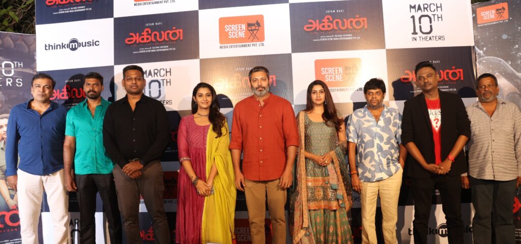 நடிகர் ஜெயம் ரவி நடிப்பில், இயக்குநர் N.கல்யாண கிருஷ்ணன் இயக்கத்தில் “பூலோகம்” படத்தின் பிரமாண்ட வெற்றிக்கு பிறகு, இக்கூட்டணியில் மீண்டும் ஒரு அசத்தலான கமர்ஷியல் படமாக உருவாகியுள்ள திரைப்படம் “அகிலன்”. இப்படத்தை Screen Scene Media Entertainment Pvt Ltd நிறுவனம் பிரமாண்டமாக தயாரித்துள்ளது. மார்ச் 10 அன்று இப்படம் உலகமெங்கும் வெளியாகிறது.