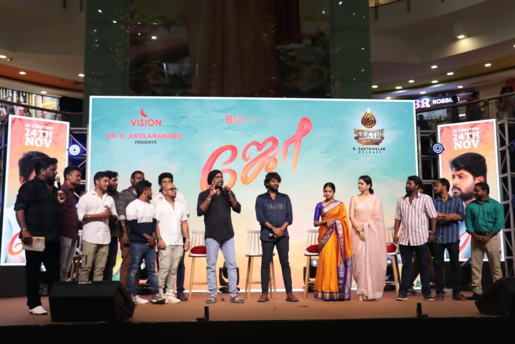 ஆர்.ஜே. இளங்கோ குமரன், “ஹீரோவுக்கு அப்பா கதாபாத்திரத்தில் இந்த படத்தில் நடித்திருக்கிறேன். அன்பிற்காக நான் உள்ளே நுழைந்த படம் இது. ஆனால், படத்திற்குள் வந்த பிறகு தான் தெரிந்தது இந்த படமே அன்பால் ஆனது என்று. அதனால், 24ஆம் தேதி ‘ஜோ’ படம் பார்த்து உங்கள் அன்பைக் கொடுங்கள்”.