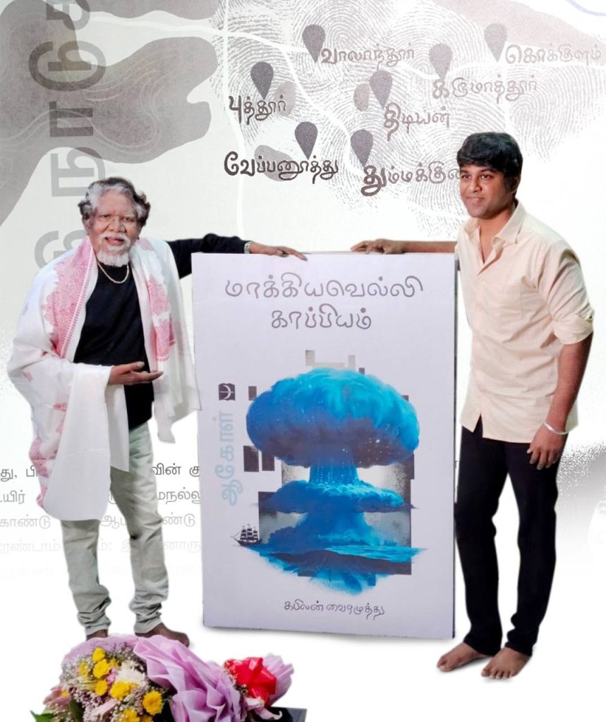 எழுத்தாளரும் பாடலாசிரியருமான கபிலன் வைரமுத்து எழுதிய மாக்கியவெல்லி காப்பியம் என்ற நாவலை இயக்குநர் பாரதிராஜா வெளியிட்டார். இது 2022 ஆம் வெளியான ஆகோள் என்ற நாவலின் இரண்டாம் பாகம். பிரிட்டிஷ் இந்தியாவின் குற்றப் பரம்பரை சட்டத்தையும் அதன் நவீன பரிணாமங்களையும் விவாதிக்கும் முறையில் கபிலன் வைரமுத்து இரண்டு நாவல்களையும் எழுதியிருக்கிறார். முதல் பாகத்தில் பன்னிரண்டு வயது சிறுவனாக இருந்த மாக்கியவெல்லி இரண்டாம் பாகத்தின் மைய கதாபாத்திரமாக வருகிறான். மதுரை மாவட்டத்துக்குட்பட்ட எட்டு நாடுகள் என்ற பகுதியில் கதை நிகழ்வதாக சித்தரிக்கப்பட்டிருக்கிறது. 1801 தொடங்கி 2057 வரையிலான காலக்கட்டத்தின் கதையாக இது எழுதப்பட்டிருக்கிறது. பல வரலாற்று தகவல்கள் மற்றும் அறிவியல் தொழில்நுட்பம் ஆகியவை குறித்த இரண்டு ஆண்டுகள் கள ஆய்வுக்கு பின் கபிலன்வைரமுத்து இந்த நாவலை எழுதியிருப்பதாக பதிப்பாளர் வேடியப்பன் குறிப்பிட்டிருக்கிறார். இஸ்ரேல் அரசு இணையவெளியில் மேற்கொண்ட முக்கியமான முன்னெடுப்புதான் இந்த இரண்டாம் பாகத்திற்கான முதல் பொறி என்று கபிலன்வைரமுத்து தன் முன்னுரையில் குறிப்பிட்டிருக்கிறார். நாவலுக்கென்று பிரத்யேகமாக மூல் என்ற கணினி மொழி உருவாக்கப்பட்டிருக்கிறது. மாக்கியவெல்லி காப்பியம் நூலை வாசகர்களுக்கு அறிமுகப்படுத்தும் வண்ணம் வருகிற அக்டோபர் 06ஆம் தேதி சென்னை டிஸ்கவரி புக் பேலஸ் வளாகத்தில் ஆசிரியர் சந்திப்பு நடைபெறவிருக்கிறது. மாக்கியவெல்லி காப்பியம் கபிலன்வைரமுத்துவின் பன்னிரண்டாவது நூல். ஐந்தாவது நாவல். ஆகோள் முதல் பாகம் ஆங்கிலத்திலும் வெளி வந்திருக்கிறது என்பது குறிப்பிடத்தக்கது.