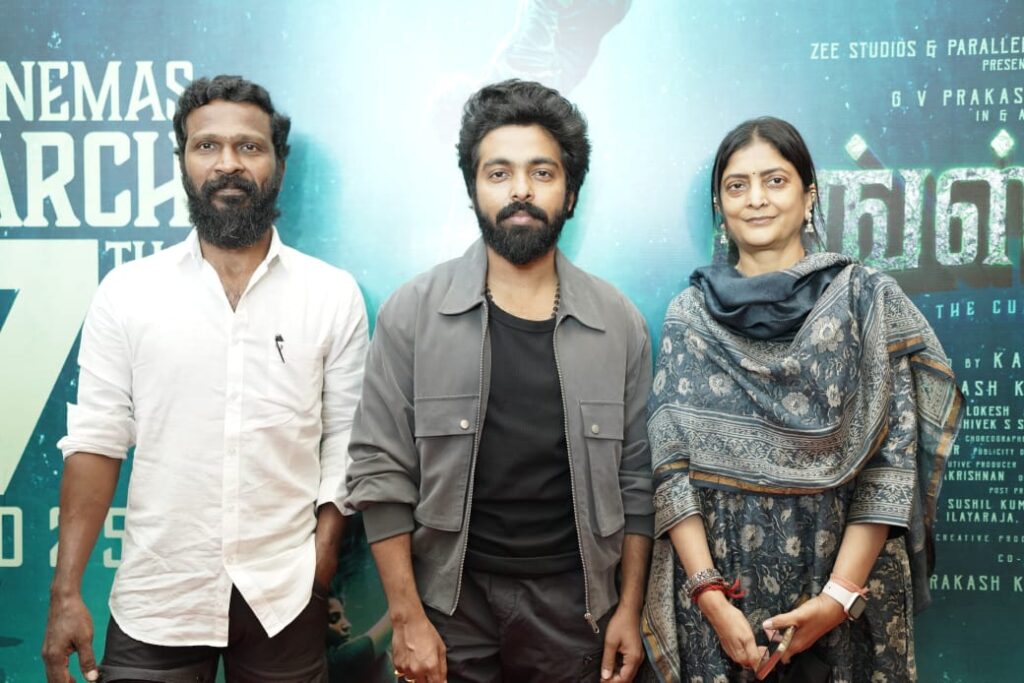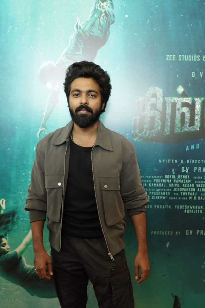 ஜீ வி பியுடன் இணைந்து பணியாற்றும் போது …நாம் சொல்ல நினைக்கும் விசயங்களை சரியாக புரிந்து கொண்டு பணியாற்றுவார். அதுதான் அவருடைய தனித்துவம். என்னைப் போன்ற படைப்பாளிகளுக்கு இதுதான் தேவை. இது எனக்கு மகிழ்ச்சியை தருகிறது. அவர் இந்த குழு மீது நம்பிக்கை வைத்து இந்த படத்தை உருவாக்கி இருக்கிறார். அதனால் இந்த படம் மிகப்பெரிய வெற்றியை பெற வேண்டும் என வாழ்த்துகிறேன்.
