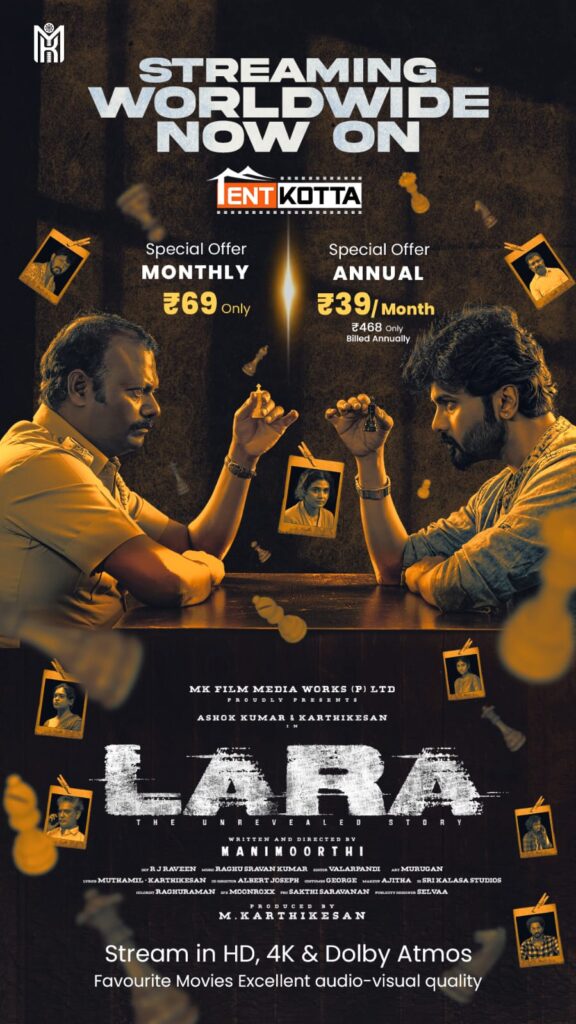 இப்போது ‘லாரா’ திரைப்படம் ‘டெண்ட் கொட்டா’ ஓடிடி தளத்தில் நேற்று வெளியாகி அடுத்த தளத்திலான ரசிகர்களைக் கவர்ந்து வருகிறது.