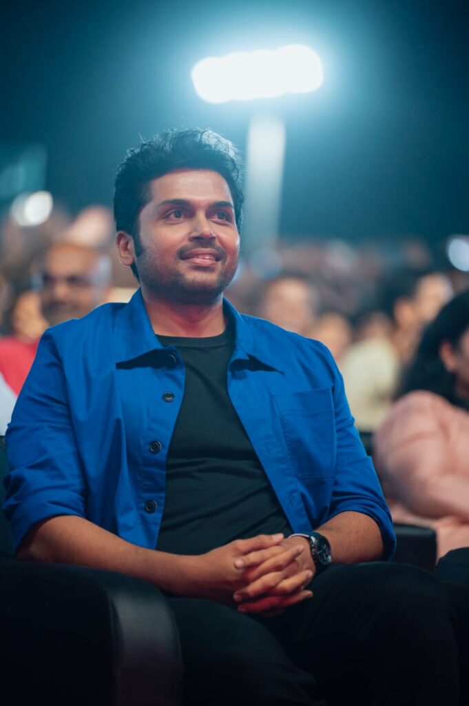 நான் நடித்த ஆயிரத்தில் ஒருவன் படத்திற்காக இதே மைதானத்தை அதிக சுற்றுகள் ஓடிய நினைவுகள் எனக்கு நன்றாகவே இருக்கிறது. வந்தியத்தேவன் கதாபாத்திரத்தை பற்றி விஜய் அண்ணன் ஒரு மேடையில், எது உனக்கு ரொம்ப வேண்டுமென்று தவிக்குறோமோ அது உனக்கு கிடைத்துவிடும் என்று கூறி இருப்பார். பள்ளிக்கூடம் படித்தது ஆண்களுடன், அதன் பிறகு கல்லூரி மெக்கானிக்கல் இன்ஜினியர், ஆசிரியர் கூட ஒரு பெண் ஆசிரியர் இருக்க மாட்டார்கள். எப்போது காதல் செய்வோம் என்று ஏங்கியதற்கு வந்தியத்தேவன் போன்ற ஒரு கதாபாத்திரம் கிடைத்தது. உலக அழகிக்கே லைன் போடுகிறோம், மிஸ் சென்னைக்கு லைன் போடுகிறோம், மீன் பிடிக்கும் பெண்ணிற்கு லைன் போடுகிறோம் யாரையும் விட்டு வைக்கவில்லை. இவ்வளவு நாள் தவித்ததற்கு இப்படி ஒரு கதாபாத்திரம் கிடைத்தது ரொம்ப சந்தோசம். மணி சாருக்கு நன்றி. இந்த நிகழ்ச்சிக்கு வந்திருப்பதில் மிக்க மகிழ்ச்சி. இந்த கூட்டத்தைப் பார்க்க மிகவும் ஆச்சரியமாக இருக்கிறது. அதே அதிர்வைக் கொடுத்த மாணவர்களுக்கு நன்றி. CSK போட்டியில் இருப்பது போல இங்கு கூட்டம் இருப்பதில் மகிழ்ச்சி.