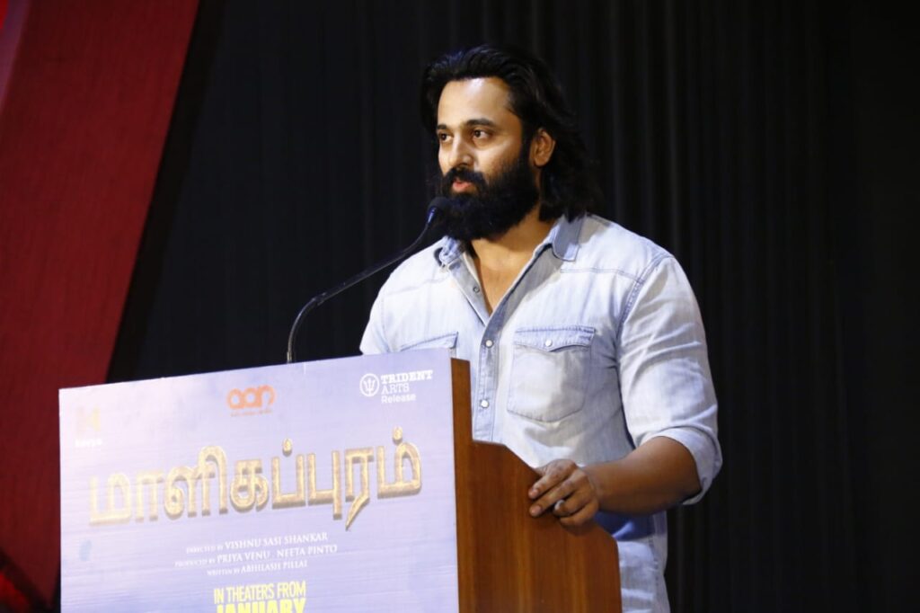 மாளிகப்புரம் என்னுடைய மற்ற படங்களைப் போல் வெறும் திரைப்படம் மட்டுமல்ல. இதுவரை 30 படங்களில் நடித்திருக்கிறேன். அதில் மிக முக்கியமான படமாக மாளிகப்புரம் இருக்கும். இந்த படத்திற்கு சமூக வலைதளங்களில் பலரும் ஆதரவு தெரிவித்து வருகிறார்கள். எனக்கு ஒரு நல்ல குடும்ப படத்தில் நடிக்க வேண்டும் என்ற ஆசை இருந்தது. நானும் ஐயப்பன் பக்தன் தான். இறுதிக் காட்சியில் என்னை மாற்றிக் கொள்ளும் அருமையான காட்சியைக் கொடுத்திருக்கிறார்கள். இந்த வாய்ப்பு கொடுத்த அனைவருக்கும் நன்றி. அபிலாஷ்-க்கும் நன்றி. இப்படத்தை தமிழில் விநியோகிக்கும் டிரைடண்ட் ஆர்ட்ஸ் நிறுவனம் சார்பாக ரவிக்கு நன்றி.