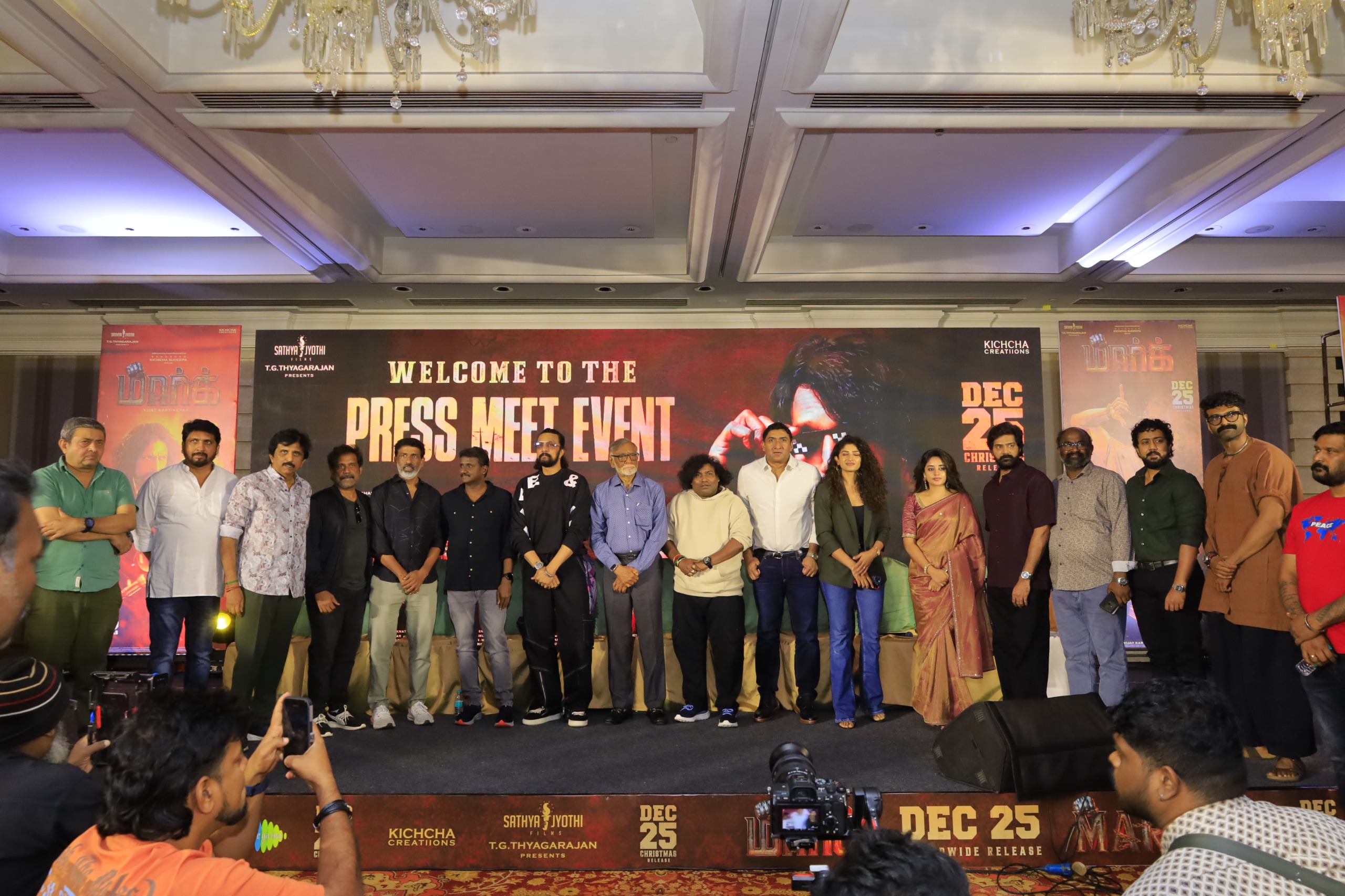 சத்ய ஜோதி ஃபிலிம்ஸ் மற்றும் கிச்சா கிரியேஷன் தயாரிப்பில், விஜய் கார்த்திகேயன் இயக்கத்தில் நடிகர்கள் கிச்சா சுதீப், நவீன் சந்திரா, விக்ராந்த், யோகி பாபு, தீப்ஷிகா மற்றும் பலர் நடிப்பில் உருவாகியுள்ள திரைப்படம் ‘மார்க்’. இந்த மாதம் கிறிஸ்துமஸ் வெளியீடாக வரவிருக்கும் இந்தத் திரைப்படத்தின் பத்திரிக்கையாளர்கள் சந்திப்பு நடைபெற்றது.