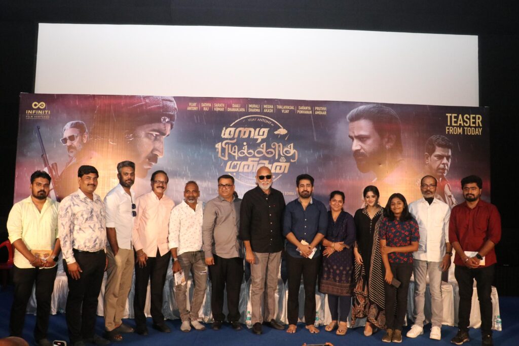 இன்ஃபினிட்டி ஃபிலிம் வென்சர் தயாரிப்பில் விஜய் மில்டன் இயக்கத்தில் நடிகர்கள் விஜய் ஆண்டனி, சரத்குமார், சத்யராஜ் மற்றும் பலர் நடித்துள்ள ‘மழை பிடிக்காத மனிதன்’ படத்தின் டீசர் வெளியீட்டு விழா இன்று நடைபெற்றது.