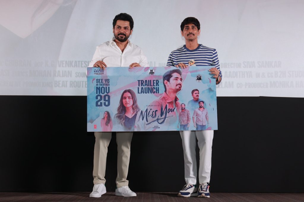 ”பசங்க லவ் மூடில் இருக்கிறாங்க.. நாம ஆக்சன் படம் எடுத்துட்டு இருக்கோம்” ; ‘மிஸ் யூ’ ட்ரெய்லர் விழாவில் யதார்த்தம் பேசிய நடிகர் கார்த்தி