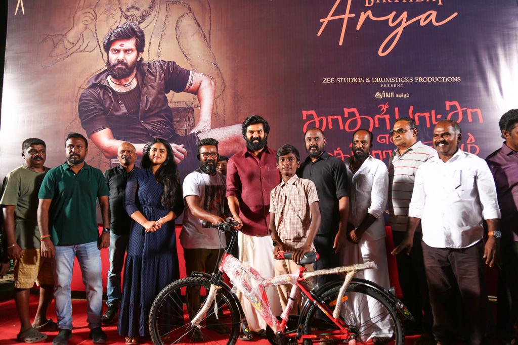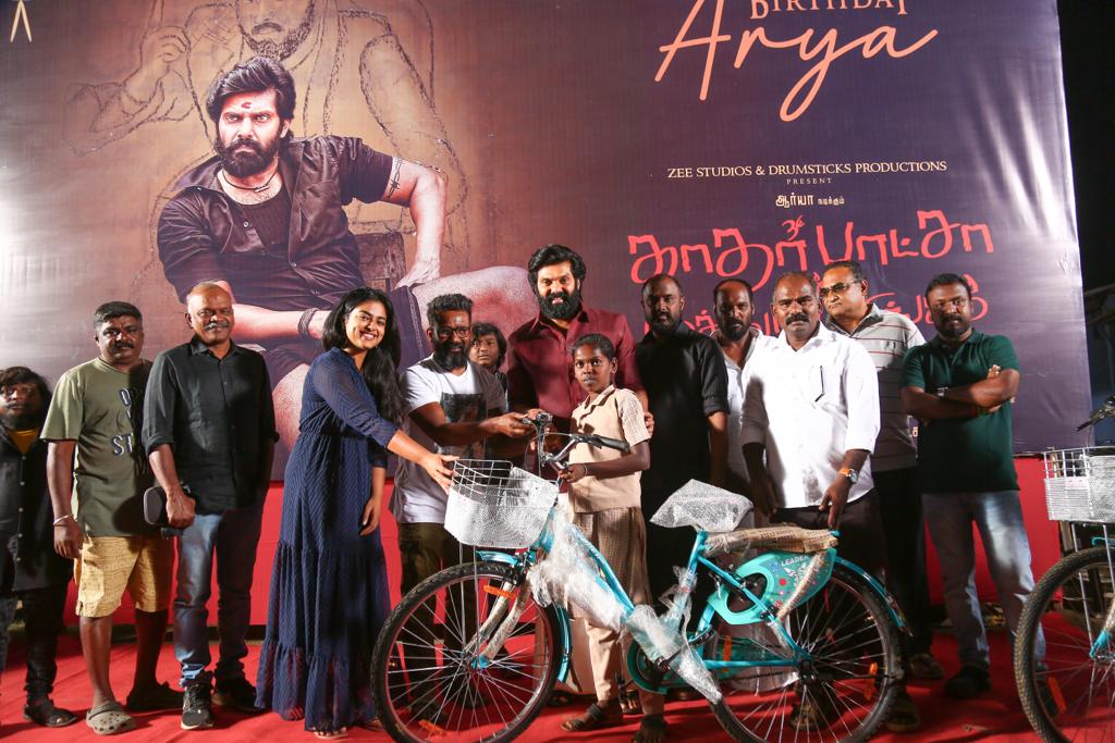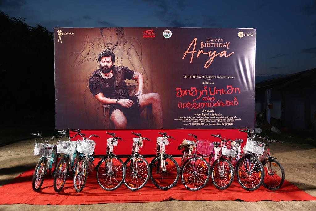பின்பு ஆர்யா பிறந்த நாளில் படப்பிடிப்பு நடைபெறும் பகுதிகளில் அரசுப்பள்ளியில் படிக்கும் அந்த பகுதிகளில் வாழும் ஏழை மாணவ, மாணவிகள் 10 பேரை தேர்ந்தெடுத்து, அவர்களுக்கு ஆர்யா அவர்களால் சைக்கிள் வழங்கப்பட்டது. மேலும் படக்குழுவினர், கிராமத்து மக்களுடனும் பள்ளி மாணவர்களுடனும் இணைந்து, ஆர்யா பிறந்த நாளை கேக் வெட்டி கொண்டாடினர்.