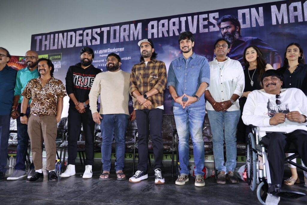 படத்தின் தயாரிப்பாளர் ஸ்டுடியோ க்ரீன் ஞானவேல் ராஜா பேசியதாவது, “கோவிட் உள்ளிட்டப் பல தடைகளைத் தாண்டி இந்தப் படத்தை சிறப்பான ஒன்றாக இயக்குநர் கிருஷ்ணா கொடுத்திருக்கிறார். ’சில்லுன்னு ஒரு காதல்’ மூலம் எங்கள் பயணம் தொடங்கியது. இந்தப் படம் இன்றளவும் பல குடும்பங்களுக்குப் பிடித்த ஒன்று. அந்தப் படத்திற்குப் பிறகு இத்தனை வருடங்கள் கழித்து மீண்டும் கிருஷ்ணாவுடன் இணைவதில் மகிழ்ச்சி. படம் நிச்சயம் வெற்றியடையும். ரஹ்மான் சாருடன் எனக்கு இது மூன்றாவது படம். தொழில்நுட்பக் குழுவைச் சேர்ந்த அனைவருக்கும் நன்றி. சாயிஷாவுக்கு ஸ்பெஷல் நன்றி. தமிழ்நாட்டின் ரன்பீர் கபூர் என்று சொல்லும் அளவுக்கு வசீகர்ம் கெளதம் கார்த்திக்கிடம் இருக்கிறது. எனக்கு சூழ்நிலை சரியில்லாதபோது படம் எஸ்.டி.ஆர். எனக்கு பண்ணி கொடுத்தார். அவருக்கும் நன்றி. கமல்ஹாசன் சார் தயாரிப்பில் அடுத்து நடிக்க இருக்கும் படத்திற்கும் அவருக்கு வாழ்த்துகள்!”.