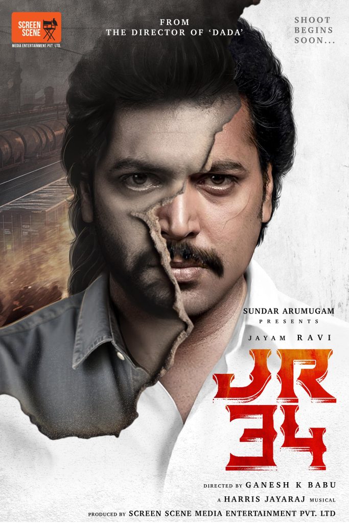 ஸ்கிரீன் சீன் மீடியா நிறுவனத்தின் சார்பில் சுந்தர் ஆறுமுகம் தயாரிப்பில் உருவாகவுள்ள ‘ஜெ ஆர் 34’ என்று அழைக்கப்படும் ஜெயம் ரவியின் 34-வது படத்தை ‘டாடா’ வெற்றிப் படத்தை இயக்கிய கணேஷ் கே பாபு இயக்குகிறார். பெரிய பட்ஜெட்டில் இப்படம் உருவாக உள்ளது. ‘அகிலன்’ மற்றும் ‘பிரதர்’ படங்களுக்கு பிறகு மூன்றாவது முறையாக ஜெயம் ரவி உடன் ஸ்கிரீன் சீன் நிறுவனம் இணைந்துள்ளது குறிப்பிடத்தக்கது.