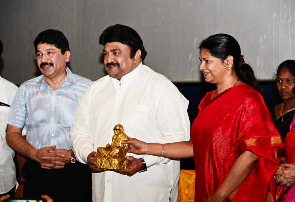 தி.மு.க மகளிர் அணி சார்பில் இன்று(ஜூன் 4) காலை, சென்னை உட்லண்ட்ஸ் திரையரங்கத்தில் நடைபெற்ற ’முத்தமிழறிஞர் கலைஞர் அவர்களின் நூற்றாண்டு விழா’வில் ’பராசக்தி’ திரையிடல் நடைபெற்றது.