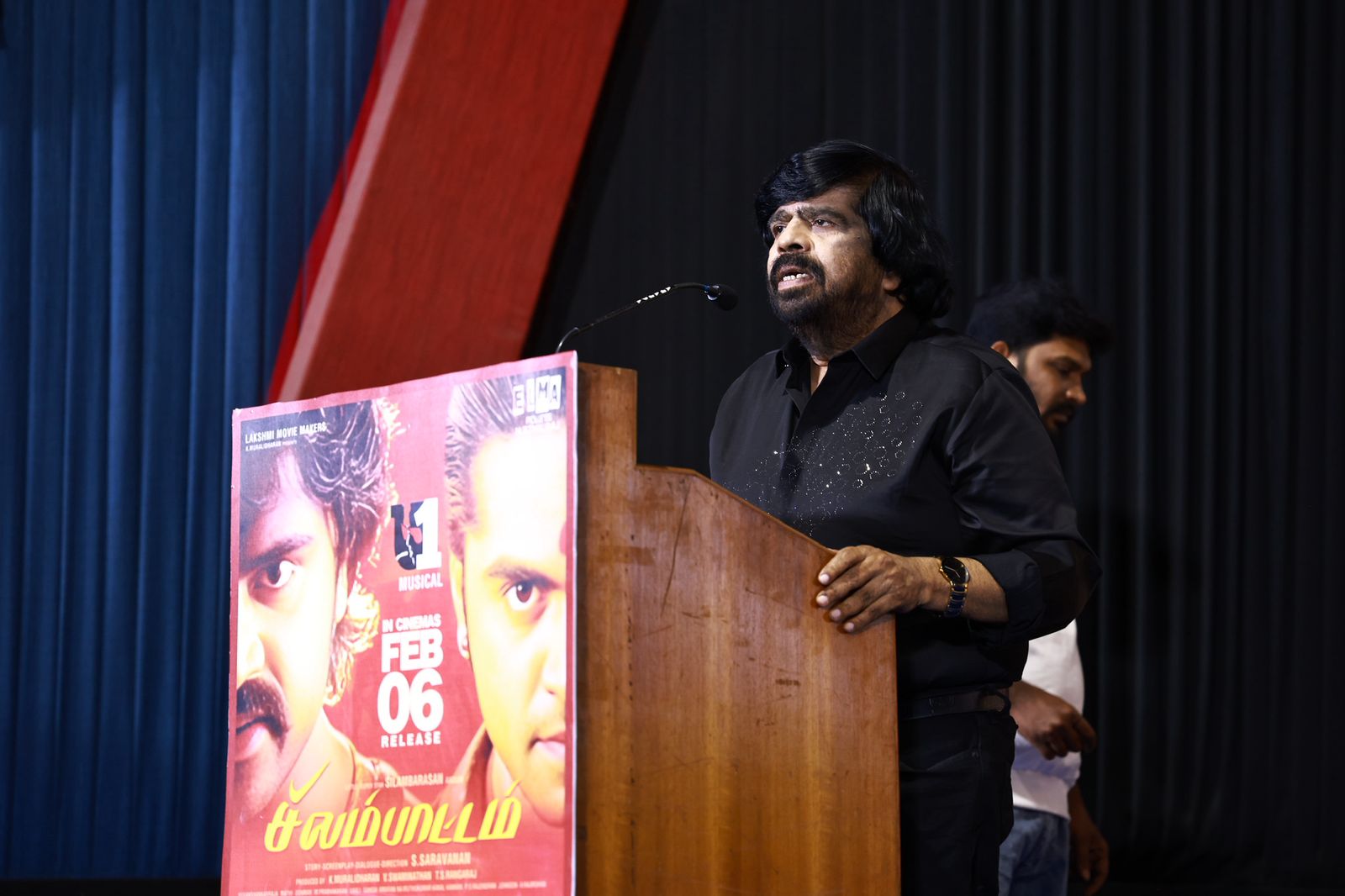 என் மகன் சிலம்பரசன் பிறந்த நாள் கொண்டாட்டத்தை, சிலம்பாட்டம் படத்தோடு கொண்டாடும் அனைவருக்கும் நன்றி. எல்மா பிக்சர்ஸ் எத்தில் ராஜ், ட்ரீம் வாரியர்ஸ் பிக்சர்ஸ் குகன் ஆகிய இருவருக்கும் என் நன்றி. இயக்குநர் சரவணன் காலம் கடந்து நிற்கும் அருமையான ஆக்சன் படத்தை தந்துள்ளார். நான் என் பையன் நடித்ததில் வியந்து பார்த்த காதல் படம், விண்ணைத் தாண்டி வருவாயா!, நானும் பல காதல் படங்களை எடுத்திருக்கிறேன். ஆனால் என்னையே வியக்க வைத்த படம், விண்ணைத் தாண்டி வருவாயா.