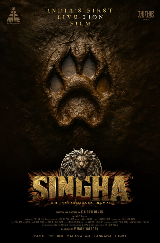 இந்தியாவிலேயே முதல்முறையாக உண்மையான சிங்கத்துடன் முழுநீளத் திரைப்படம் ஒன்று உருவாக்கப்பட்டு வருகிறது. ‘சிங்கா’ என்ற பெயரிடப்பட்டுள்ள இப்படத்தை எட்செட்ரா என்டெர்டெயின்மென்ட் பேனரில் வி. மதியழகன், தித்திர் ஃபிலிம் ஹவுஸ் உடன் இணைந்து பிரம்மாண்ட பொருட்செலவில் தயாரிக்கிறார்.