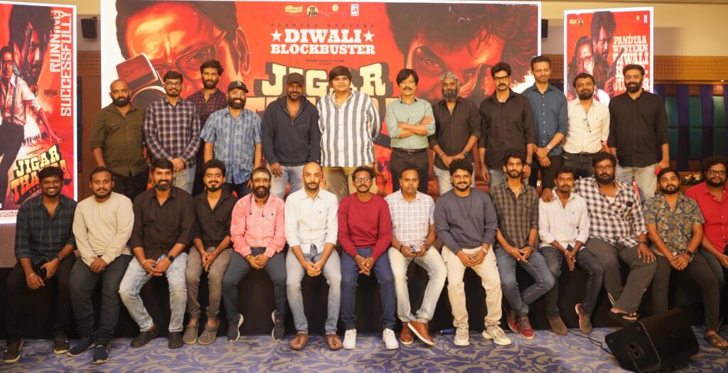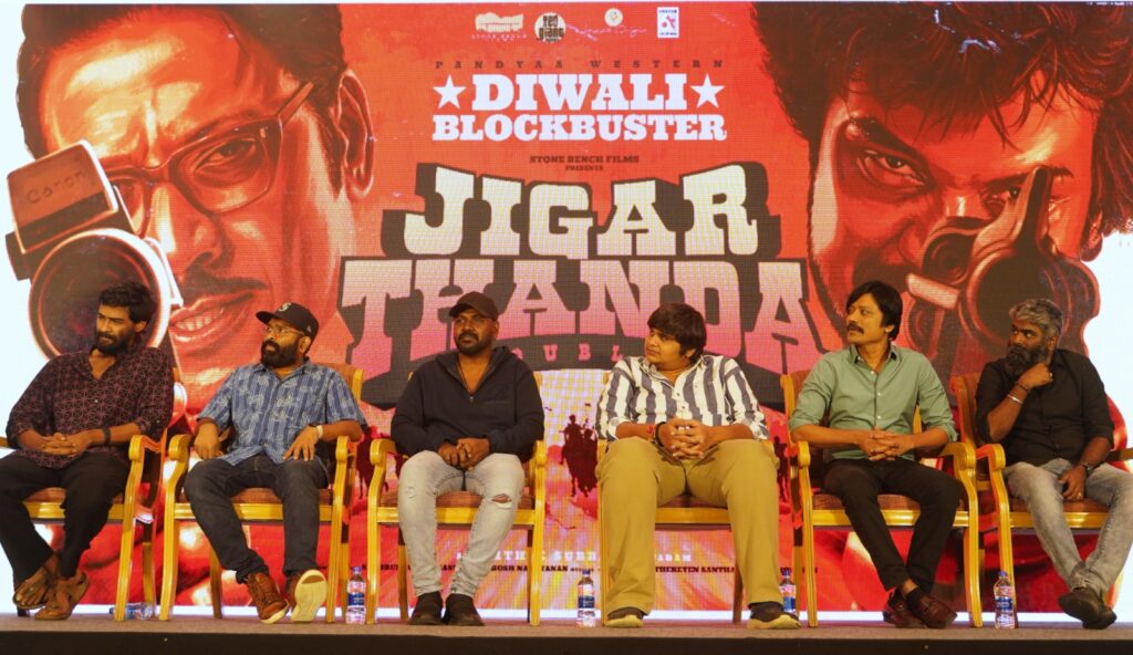 கார்த்திக் சுப்பராஜ் இயக்கத்தில், ஸ்டோன்பெஞ்ச் பிலிம்ஸ் கார்த்திகேயன் சந்தானம் தயாரிப்பில், ரெட் ஜெயின்ட் மூவீஸ் வெளியீட்டில் ராகவா லாரன்ஸ் மற்றும் எஸ் ஜே சூர்யா உள்ளிட்டோர் நடிப்பில் தீபாவளியை முன்னிட்டு நவம்பர் 10 அன்று வெளியாகி சூப்பர் டூப்பர் ஹிட் அடித்திருக்கும் ‘ஜிகர்தண்டா டபுள் எக்ஸ்’ திரைப்படத்தின் இணை தயாரிப்பாளர்கள் கல் ராமன் எஸ் சோமசேகர், கல்யாண் சுப்பிரமணியம் மற்றும் அலங்கார் பாண்டியன் ஆவர். இப்படத்தின் நன்றி தெரிவிப்பு விழா சென்னையில் வெள்ளிக்கிழமை (நவம்பர் 17) நடைபெற்றது. நிகழ்ச்சியின் முக்கிய அம்சங்கள் வருமாறு: