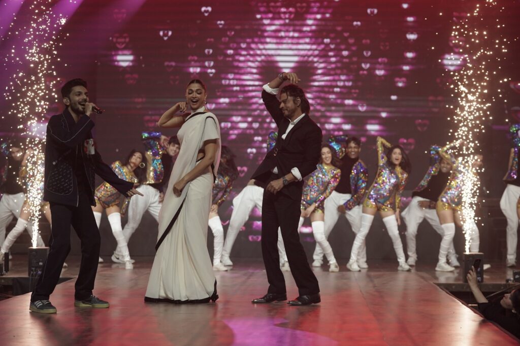 இந்த செய்தியாளர் சந்திப்பு நிகழ்வில் சாலேயா பாடலுக்கு SRK மற்றும் தீபிகா படுகோனே நடனமாடி அசத்தினர். இதற்கு முன்னதாக, SRK நாட் ராமையா வஸ்தாவய்யா பாடலையும் நேரலையில் நிகழ்த்தினார், அவரது வசீகரமான நடனத்தால் அனைவரையும் வியப்பில் ஆழ்த்தினார்.