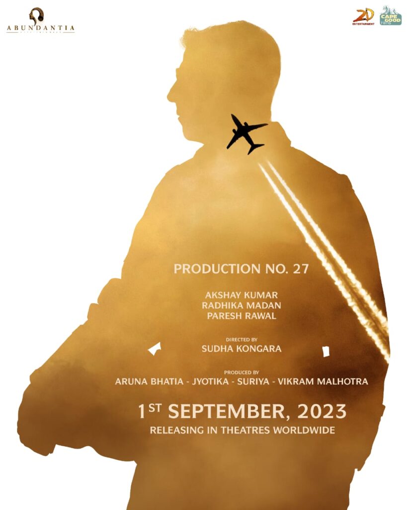 சிறந்த இயக்குநருக்கான தேசிய விருது பெற்ற இயக்குநர் சுதா கொங்கரா இயக்கத்தில் தயாராகி வெளியான திரைப்படம் ‘சூரரைப் போற்று’. தமிழில் வெளியான இந்த திரைப்படம் இந்தியில் மறு உருவாக்கம் செய்யப்பட்டுள்ளது. தமிழில் இயக்கிய சுதா கொங்கரா இயக்கத்தில், இந்தியில் தயாராகி இருக்கும் இந்தப் படத்தில் பாலிவுட்டின் நட்சத்திர நடிகர் அக்சய் குமார் கதையின் நாயகனாக நடித்திருக்கிறார். இவருடன் நடிகை ராதிகா மதன், பரேஷ் ரவால் உள்ளிட்ட பலர் நடித்திருக்கிறார்கள். இந்த திரைப்படத்திற்கு ‘இசை அசுரன்’ ஜீ. வி. பிரகாஷ் குமார் இசையமைத்திருக்கிறார். இந்திய விமானப் படையில் பணியாற்றிய அதிகாரி கேப்டன் கோபிநாத் அவர்களின் வாழ்க்கை வரலாற்றை தழுவி தயாராகி இருக்கும் இந்த திரைப்படத்தை அபன்டண்சியா எண்டர்டெய்ன்மென்ட், கேப் ஆஃப் குட் ஃபிலிம்ஸ் மற்றும் 2 டி எண்டர்டெய்ன்மென்ட் ஆகிய பட நிறுவனங்கள் சார்பில் தயாரிப்பாளர்கள் அருணா பாட்டியா, ஜோதிகா, சூர்யா, விக்ரம் மல்ஹோத்ரா ஆகியோர் இணைந்து தயாரித்திருக்கிறார்கள்.