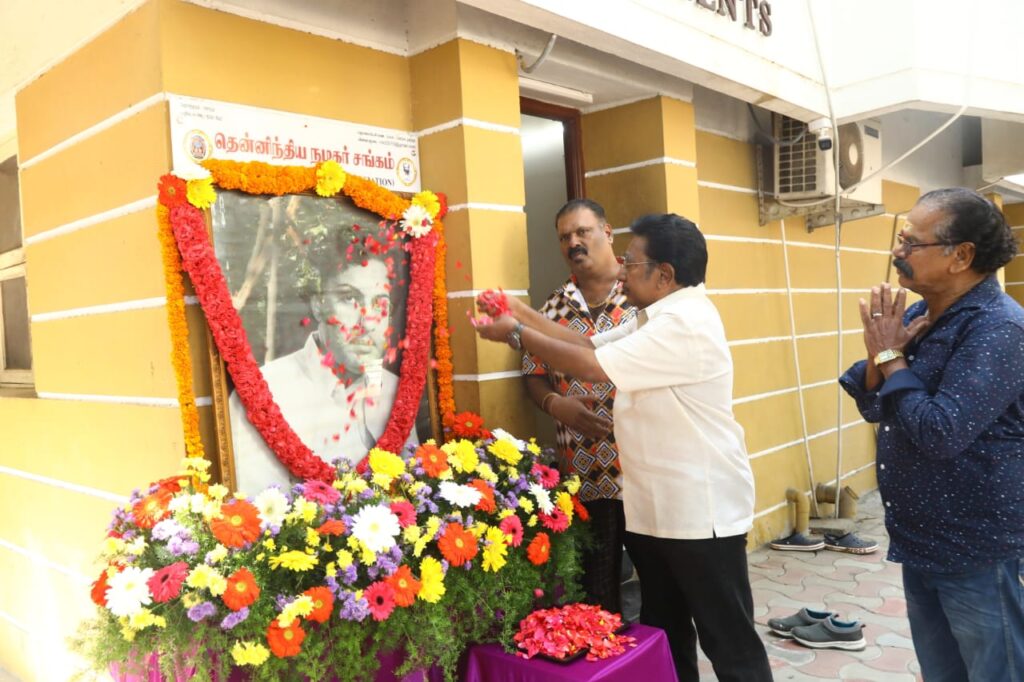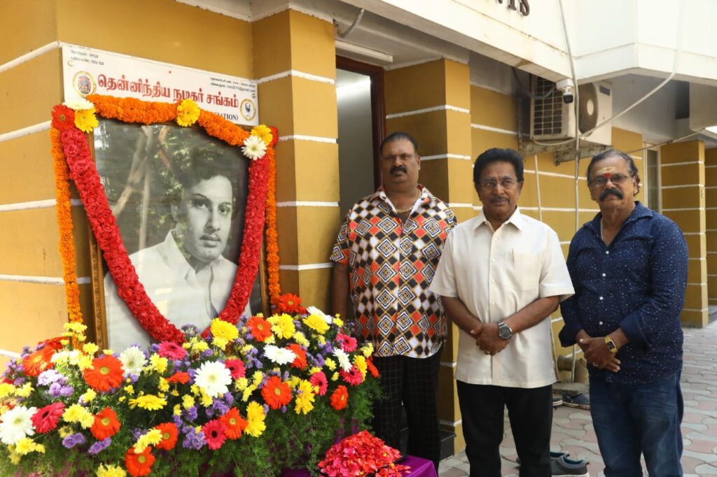 இன்று 17.1.2023 காலை 10.30 மணியளவில் தென்னிந்திய நடிகர் சங்க அலுவலகத்தில் செயற்குழு உறுப்பினர்கள் மூத்த நடிகர் ராஜேஷ், தளபதி தினேஷ் மற்றும் M.A. பிரகாஷ் ஆகியோர்கள் மாலை அணிவித்து மரியாதை செலுத்தினார்கள்.