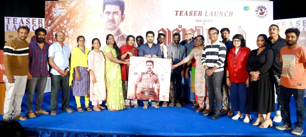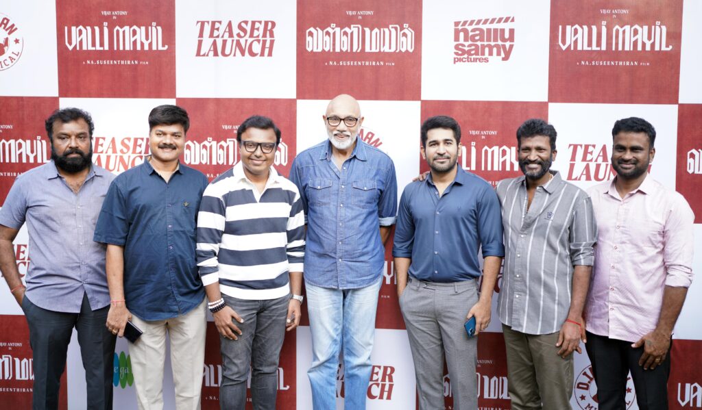 நல்லுசாமி பிக்சர்ஸ் சார்பில் தயாரிப்பாளர் தாய் சரவணன் தயாரிப்பில் இயக்குநர் சுசீந்திரன் இயக்கத்தில், விஜய் ஆண்டனி, ஃபரியா அப்துல்லா, பாரதிராஜா, சத்யராஜ் நடிக்கும் புதிய திரைப்படம் “வள்ளிமயில்”. 80களின் நாடகக்கலை பின்னணியில் பரபரப்பான திரில்லர் படமாக உருவாகியுள்ள இப்படத்தின் டீசர் வெளியீட்டு விழா படக்குழுவினர் கலந்து கொள்ளப் பத்திரிக்கை ஊடக நண்பர்கள் முன்னிலையில் நடைபெற்றது.