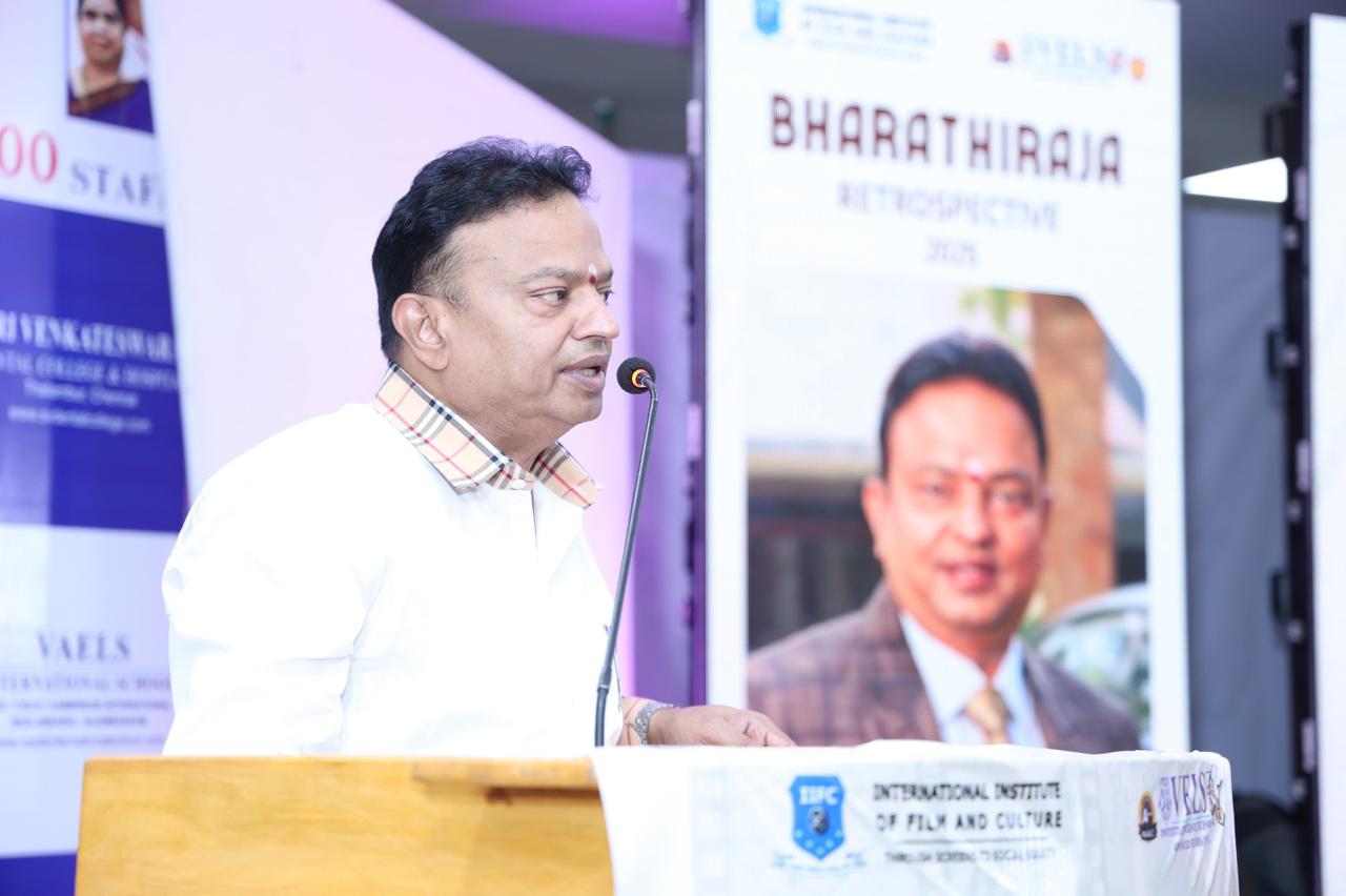 .தமிழ் திரை உலக வரலாற்றில் மறக்க முடியாத இயக்குநர் பாரதிராஜா அவர்கள் தமிழ் சினிமாவிற்கு ஆற்றிய பங்களிப்பை சிறப்பிக்கும் வகையில், வேல்ஸ் பல்கலைக்கழகத்தின் காட்சி தொடர்பியல் துறை மற்றும் இயக்குநர் வெற்றிமாறன் அவர்களின் பன்னாட்டு திரை – பண்பாட்டு ஆய்வகம் இணைந்து, நவம்பர் 7 முதல் 11 ஆம் தேதி வரை அவரது படைப்புகளை போற்றும் வகையில் பெருவிழா நடத்துகிறது.