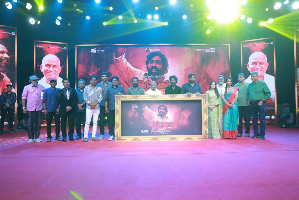 இயக்குநர் வெற்றிமாறன், “ஒரு படம் எடுப்பதற்கு நிறைய உழைப்பு தேவை. ஒருவர் நம்பும் விஷயத்தை மற்றவர்களும் கண்ணை மூடிக்கொண்டு நம்புவது படத்தின் வெற்றிக்கு மிக முக்கியம். டிசம்பர், 2020 தான் படத்தை ஆரம்பித்தோம். கிட்டத்தட்ட நான்கு வருடங்கள் ஆகிவிட்டது. இத்தனை காலம் இந்த கதையை புரிந்து கொண்டு முழு நம்பிக்கையில் பயணித்த குழுவினருக்கு மிக்க நன்றி. படத்தில் என்னுடைய அசிஸ்டெண்ட் அனைவரும் கோ-கிரியேட்டர்ஸாக உழைத்திருக்கின்றனர். இதுபோன்ற டீம் கிடைத்தது என் பாக்கியம். இதில் ராஜா சார் உள்ளே வந்தது எனக்கு அதிர்ஷ்டம். அவர் ரொம்பவே பன்ச்சுவல். நான் பத்து நிமிடம் தாமதமாக அவரைப் பார்க்க சென்றால் கூட அதற்குள் நான்கு ட்யூன் போட்டு வைத்திருப்பார். அவர் எனக்கு பர்சனலாகவும் நிறைய இடம் கொடுத்திருக்கிறார். அதெல்லாம் எனக்கு பெருமையான விஷயம். படத்தில் இயக்குநரின் வேலை என்ன அதற்கு தன்னுடைய சிறந்த பங்களிப்பு என்ன தர முடியும் என்பதில் அவர் தெளிவாக இருப்பார். அவரின் ஜீனியஸ் மைண்டை அருகில் இருந்து பார்த்தது மகிழ்ச்சி. படத்தில் நான்கு பாடல்கள் உண்டு. ஒவ்வொன்றும் ஒவ்வொரு விதமாக இருக்கும். எட்டு நாள்தான் கால்ஷீட் என சேதுவை இந்தப் படத்திற்கு கூப்பிட்டேன். ஆனால் இரண்டு பாகமும் சேர்த்து 257 நாட்கள் ஆகிவிட்டது. இதில் சேது குறைந்தது 120 நாட்கள் நடித்திருப்பார். அந்த பொறுமைக்கு நன்றி. சூரியும் நிறைய நாட்கள் நடித்திருக்கிறார். இந்தப் படம் மூலம் எல்லோரும் நிறைய கற்றிருக்கிறோம். படத்தில் மஞ்சு வாரியரையும் 3 நாட்கள் கால்ஷீட் என்றுதான் கூப்பிட்டேன். ஆனால், இப்போது அவருக்கு படத்தில் இரண்டு பாடல்கள் உள்ளது. முக்கியமான கதாபாத்திரம் அவருடையது. என்னுடைய குடும்பம், நண்பர்கள், டீம் எல்லோருக்கும் நன்றி”