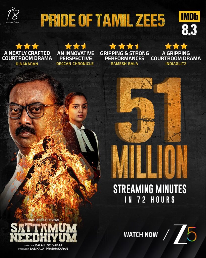 இந்தியாவின் முன்னணி ஸ்ட் ரீமிங்க் தளமான ZEE5 தமிழில் அடுத்தடுத்து பல தரமான படைப்புகள் மூலம் ரசிகர்களை மகிழ்வித்து வருகிறது. ZEE5 வெளியீடாக 2025 ஜூலை 18 ல் வெளியான ‘சட்டமும் நீதியும்’ சீரிஸ்,fசீரிஸில் நடிகர் சரவணன், நம்ரிதா MV முக்கிய கதாபாத்திரத்தில் நடித்துள்ளனர். 15 வருட இடைவெளிக்குப் பிறகு, மீண்டும் இந்த சீரிஸ் மூலம் ஹீரோவாக திரும்பியிருக்கிறார் சரவணன்.