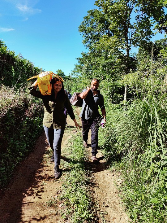 சுமைகளை தூக்கிக்கொண்டு மலைப்பகுதிகளில் படக்குழுவினருடன் பல மைல்கள் நடந்த சுனைனா