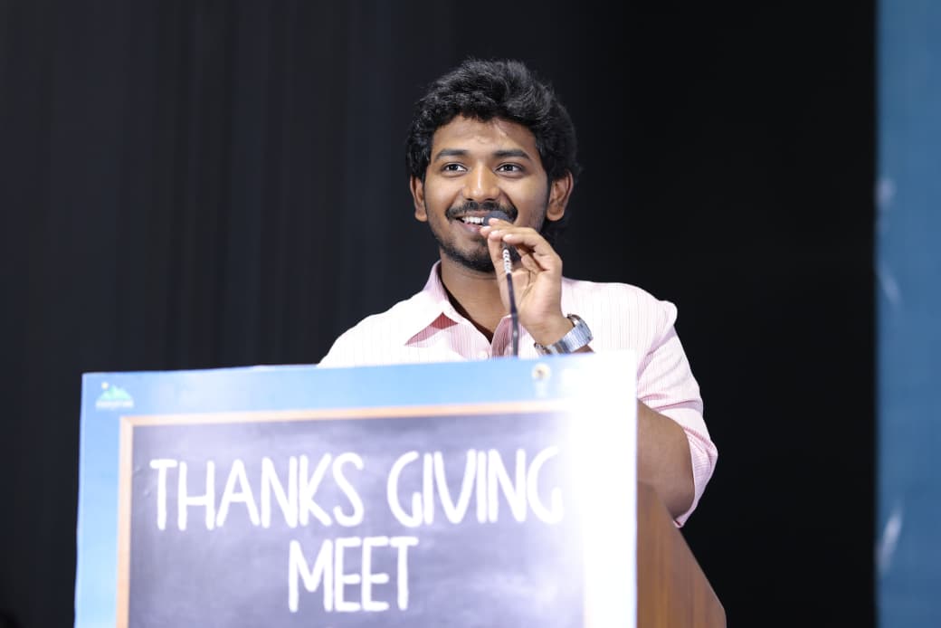 முதலில் பத்திரிகை மற்றும் ஊடக நண்பர்கள் அனைவருக்கும் என் மனமார்ந்த நன்றி. இன்றைய காலத்தில் ஒரு படம் வெளியானதை மக்களிடம் கொண்டு சேர்ப்பது மிகவும் கடினம். அதை நீங்கள் உங்கள் செய்திகளால் மக்களிடம் சேர்த்தது பெரிய உதவி. அதற்காக உங்களுக்கு என் மனமார்ந்த நன்றி. எங்கள் மார்க்கெட்டிங் குழுவுக்கும் என் நன்றி. அனைவரும் சேர்ந்து இந்த படத்தை மக்களிடம் கொண்டு சென்றுள்ளீர்கள். முதலில் கடவுளுக்கும் என் நன்றி. அதற்குப் பிறகு என் அப்பா, அம்மாவுக்கும் என் நன்றி.